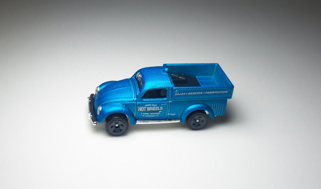O "carro do povo" se tornou um sucesso na Alemanha e no resto do mundo, e bem lá no início outras possibilidades foram testadas para ele pela Volkswagen, uma delas foi uma versão picape criada para transportar peças e outros veículos dentro da fabrica na época. A mecânica era naturalmente simples, o motor era de quatro cilindros com potência de 28 cv. Infelizmente a ideia de tornar o modelo comercial nunca foi para a frente. Na Hot Wheels eu apresento o '49 Volkswagen Beetle Pickup da linha básica 2019 (lançamento) com pintura azul e rodas 5SP.
